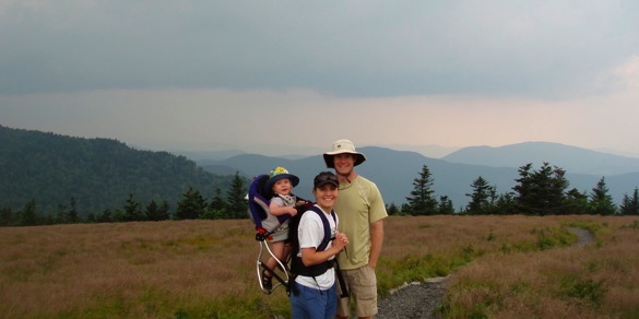 For the second consecutive Fourth of July, the three of us retreated to Roan Mountain for a relaxing getaway. Parker has been to the Roan several times, but this was the first time that he has hiked on the Appalachian Trail. We hiked up to Round Bald where Parker enjoyed walking around and climbing on rocks (see photos and movie pages). Our hike was cut short by a bad storm that swooped in, but we had fun running down the mountain as it started to rain.