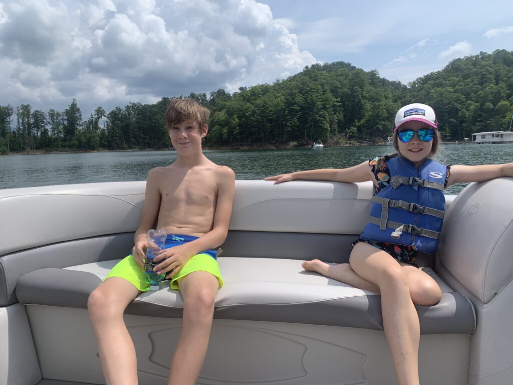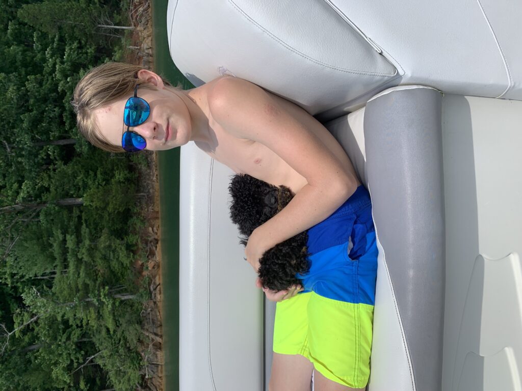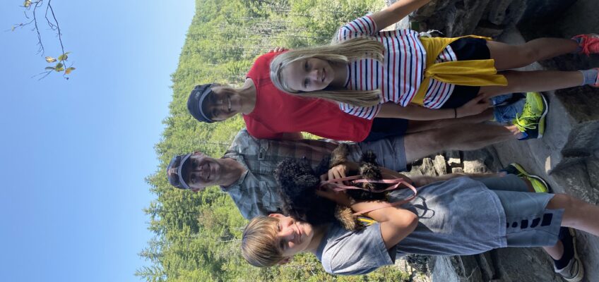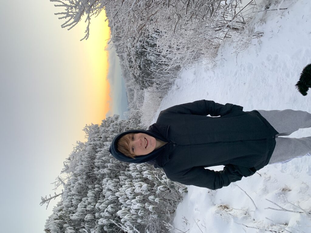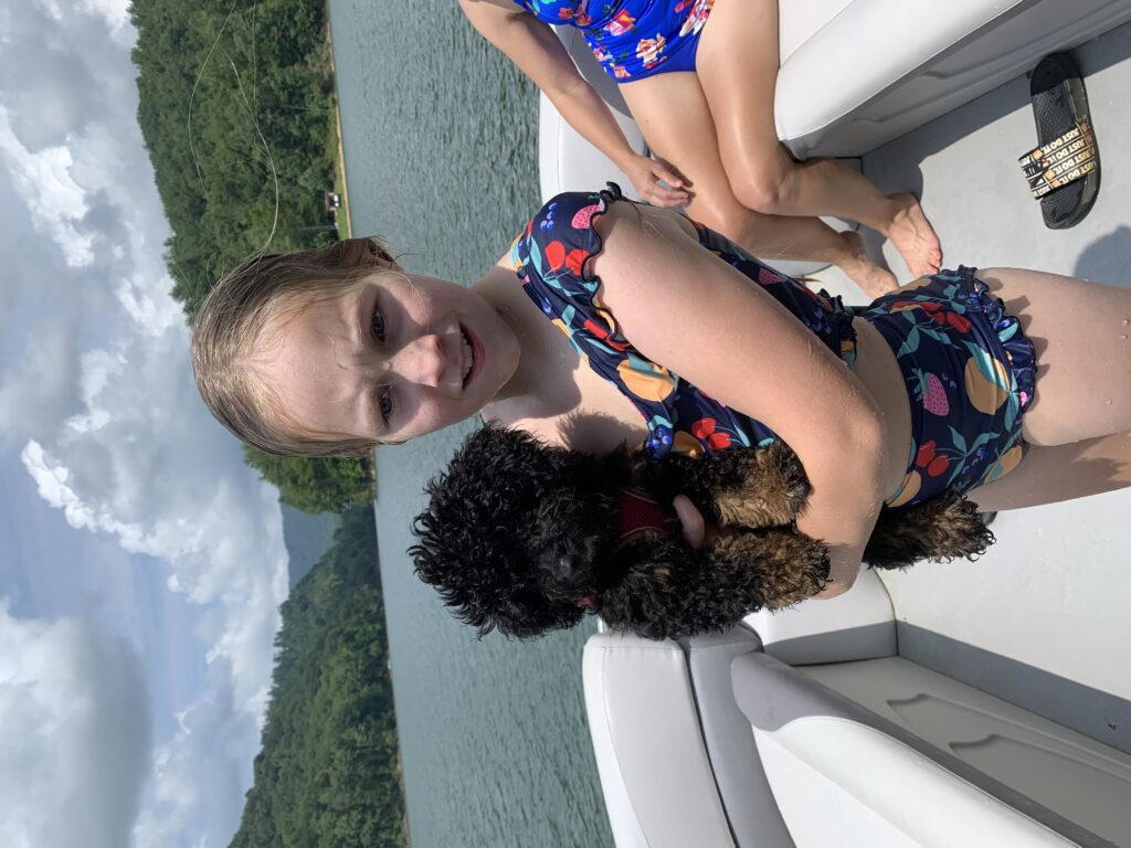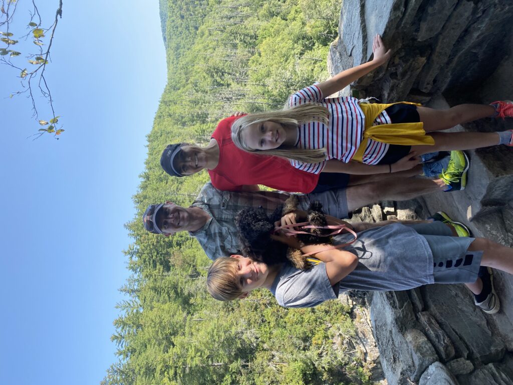 As the summer ended and throughout the fall, we made many trips to Roan Mountain. One trip included a beautiful day on Lake Watauga. We rented a pontoon boat from Fish Springs Marina and enjoyed cruising around the lake. On another trip, our friends Ben and Ginger Cunningham joined us. On that trip, we explored Linville Gorge. On another trip, Jay and Parker went up with the Ponce boys for a boys fishing getaway. On our last trip for the season, Lulu really got to experience some cooler air. At the cabin, it was cold with some remnants of snow on the ground. We decided to drive up to Carver’s Gap for our traditional hike up to Round Bald. We were about a mile down the road when everything turned into a white, frozen tundra. Lulu loved it! We were able to make it all the way to Round Bald. It was a beautiful view of the area that I have never seen before. On our way back to Winston-Salem, we stopped by Elk River Evergreens and picked out a Christmas tree.