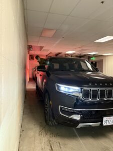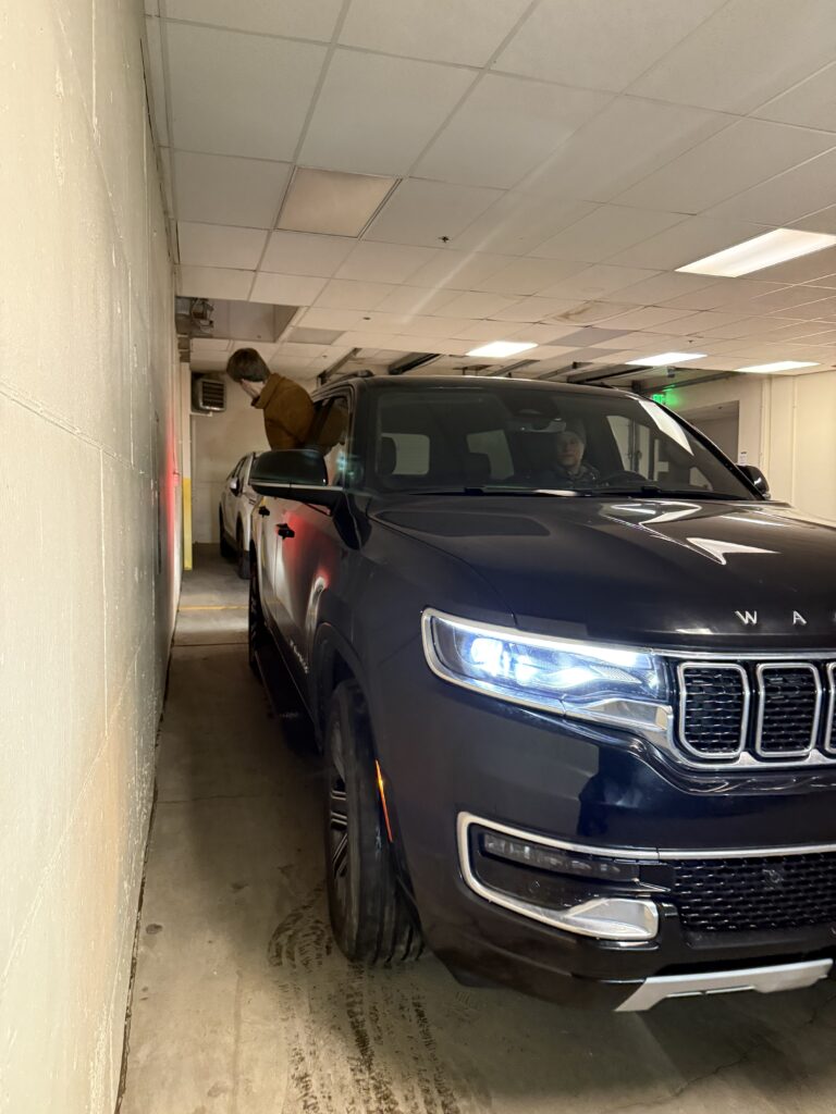 Our condo had a weird, dedicated parking space that required parallel parking in a parking garage. With an assist from Parker, Jay was able to park our behemoth. Afterwards, Jay declared that he could now walk the earth fearing no man!